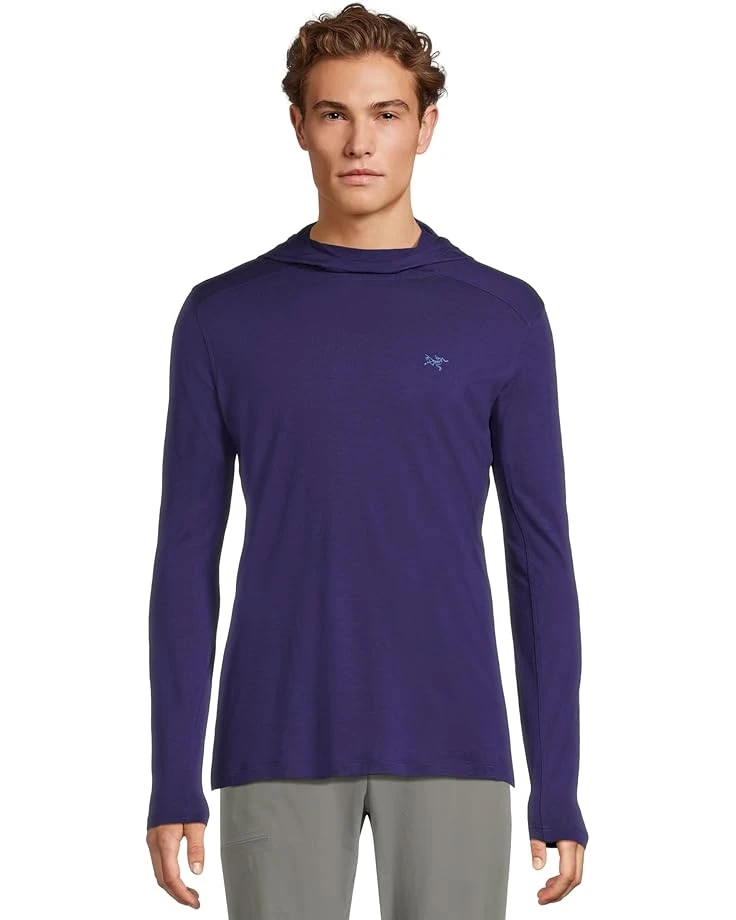 This top is perfect. The material was my priority as I live in the PNW, and merino makes life warmer and dry. This top fits true to size. I buy large in most tops with other Mfg’s and the Large with ARCTERYX was perfect size. Has a little stretch, but fits slim. The neck on the hood has enough length to pull up onto face easy and provides good coverage. I could live in this garment. It’s my go to! My favorite